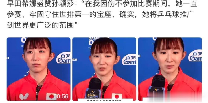 赛后早田希娜接受日媒采访,她应该也很欣赏莎莎,她说:“在我因伤不参加比赛期间,她一直参赛,牢固守住世排第一的宝座,确实,她将乒乓球推广到世界更广泛的范围。”她应该打心底里被莎莎打服了吧,今晚莎莎要接着打伊藤美诚了。