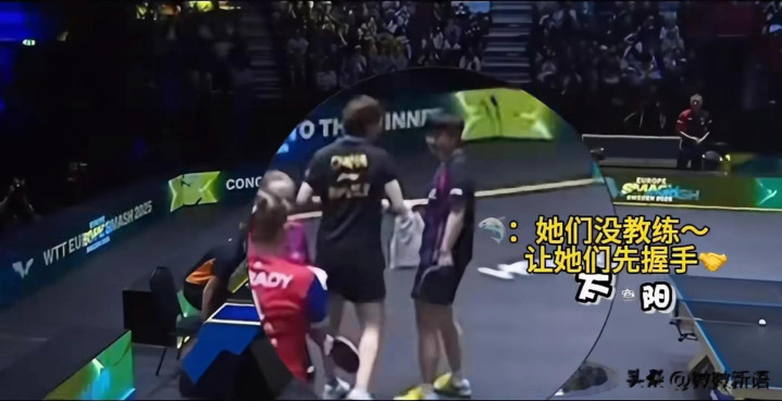 昨天莎莎和曼昱都是一日两赛,两个人的女双也赢了,女双比赛结束时,莎莎对曼昱说:“她们没教练,让她们先握手。”等着对手和马琳握手后,莎莎和曼昱才走过去和马琳握手,真的是很细节的女孩子啊。